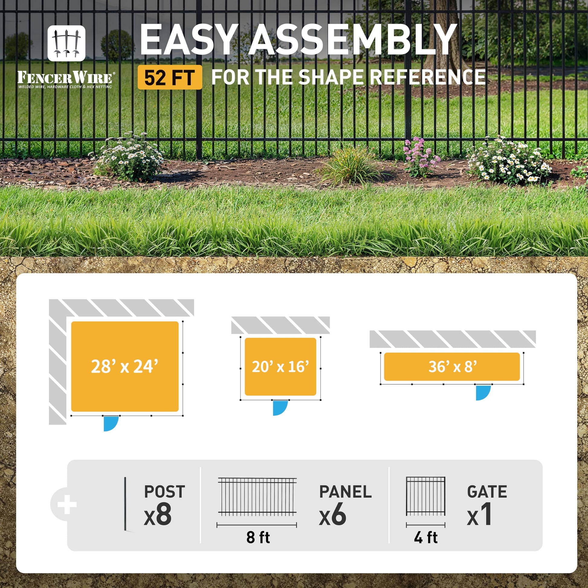 Fencer Wire 100FT Heavy Duty Flat Top Fence Barrier Kit, Anti-Rust Metal Steel Fence with 6FT Height X 8FT Width Panels, Gate, Posts, Connectors, 2” Diameter Outdoor Fencing for Yard, Pool, Patio